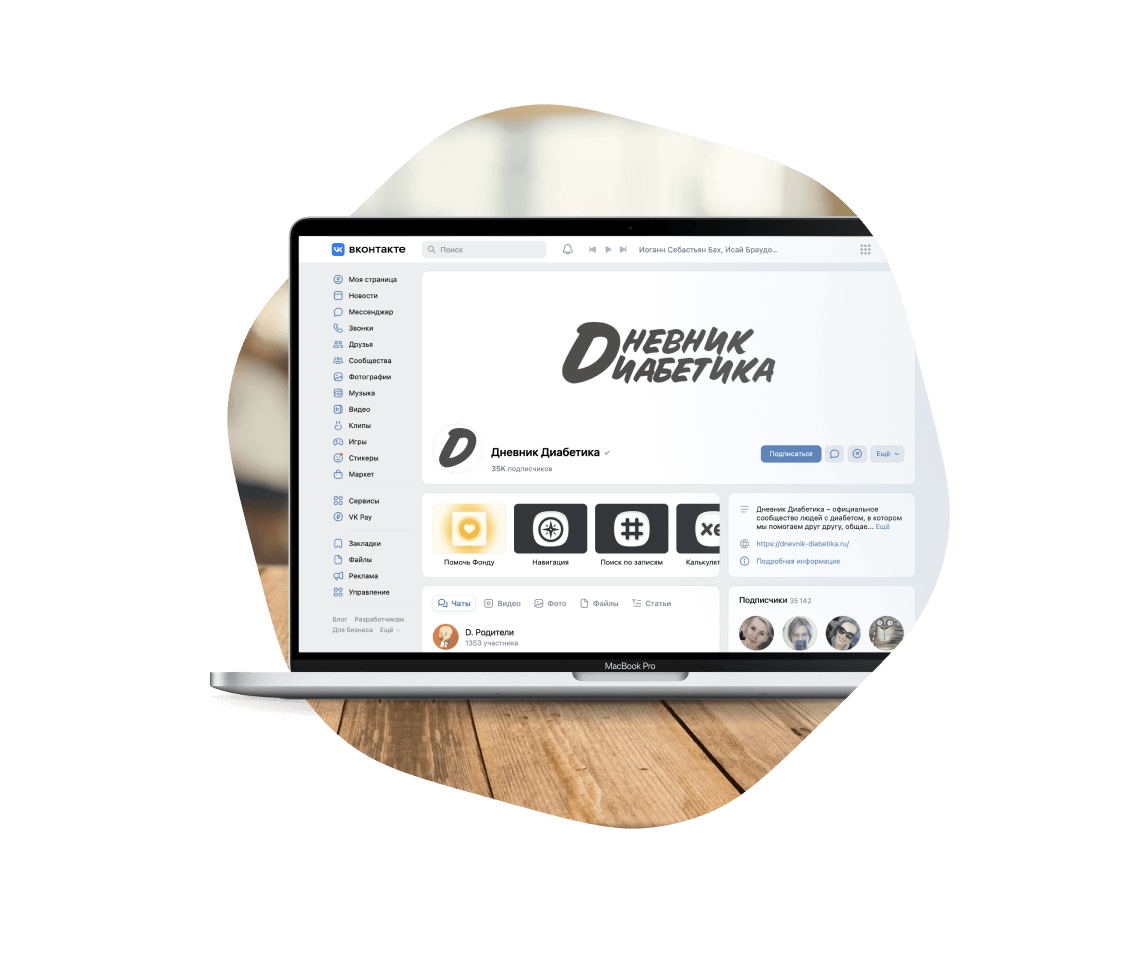 Нами уже разработана экосистема на базе ВКонтакте, где люди с сахарным диабетом могут получить комплексную помощь и поддержку. На данный момент актуальные метрики эффективности...
